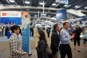 講義の合間には展示会場にいき、診療で使う装置や材料などの買い付けを行います。