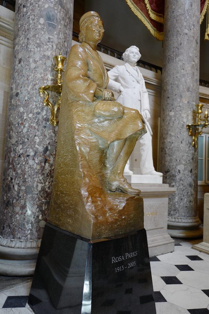 下の画像はMartin Luther King Jr 牧師とRosa Parks.どちらも公民権運動の旗手ですが、時の政権に公然と戦いを挑んで議論を巻き起こした人ですが、国会議事堂の中に銅像が展示されています。