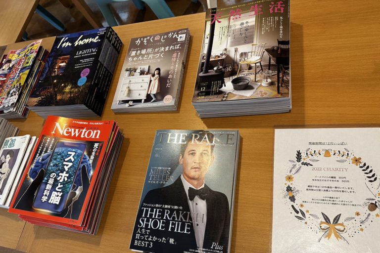 チャリティは「E-Smile Charity」として、大阪オフィス・芦屋オフィスで絶賛開催中!1冊300~500円で販売しているES Libraryの書籍・雑誌の売上を100%、またオフィスの販売物についても販売額の20%をハタチ基金に寄付しています。