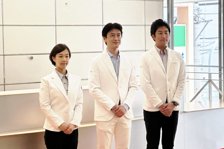撮影が始まり、やや緊張した面持ちの宮本先生と谷野先生。毎週のように全国各地で講演している有本院長はさすがの表情、余裕が見えますね。